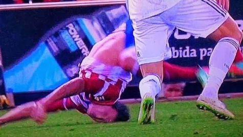 Sin duda una de las imágenes del Atlético-Real Madrid ha sido la aparatosa caída de Javier Manquillo. El jugador fue sustituido tras sufrir una espeluznante caída sobre su propio cuello al chocar en un salto con Cristiano Ronaldo. Tras la jugada Manquillo continuó jugando con normalidad y en el descanso fue sustituido por Juanfran y llevado a un hospital, donde tras ser sometido a diferentes pruebas se confirmó que sufre un esguince cervical.