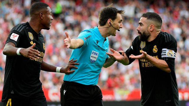 El segundo incidente, ocurrido a los nueve minutos, no fue tan claro. En realidad, no se trató de un gol anulado. Rüdiger realizó una entrada sobre Ocampos y el jugador cayó al suelo. Segundos después, con el balón en juego y con el Real Madrid saliendo a la contra, el árbitro paró el juego para comprobar el estado del argentino que yacía en el suelo. En el cuadro merengue nadie se dio cuenta y la jugada terminó con Rodrygo cediéndosela a Bellingham para que marcase a placer. Los madridistas enloquecieron al ver que el colegiado había decidido parar el juego para atender al sevillista en lugar de dejar acabar la jugada.