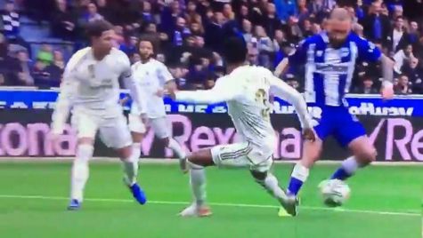 Una de las jugadas polémicas del Alavés-Madrid (1-2) de este sábado tuvo lugar a pocos minutos de empezar el partido. Éder Militao contactó con Aleix Vidal y el jugador local se fue al piso, exagerando algo la acción