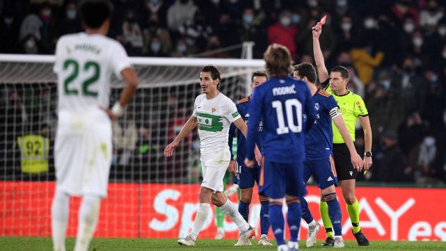 El Real Madrid se ha clasificado para los cuartos de final de la Copa del Rey. Pero, una vez más, la victoria no ha estado exenta de controversia. En el encuentro, que debió definirse en la prórroga tras terminar los 90 minutos sin goles, la bronca de los jugadores del Elche se hizo presente en los últimos instantes del partido cuando les anularon el tanto que habría forzado la tanda de penaltis.