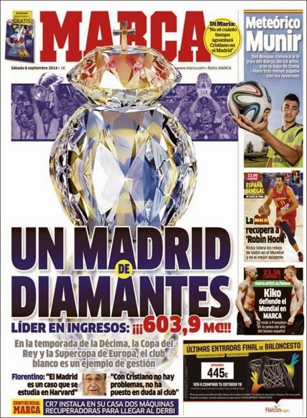 Portada Marca, sábado 6 septiembre 2014 - Un Madrid de diamantes