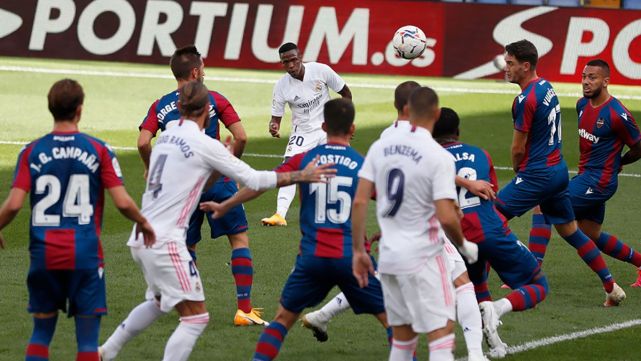 El equipo blanco ha comenzado dominando un partido en el que parecía que volvía a encontrarse con su mejor versión. Tras atacar durante los primeros minutos del encuentro, Vinicius Jr, a la salida de un saque de esquina, conseguía conectar un buen disparo al palo largo de la portería del Levante. El delantero brasileño anota, por primera vez, en dos partidos consecutivos como merengue.