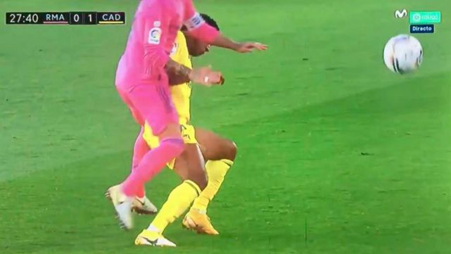Una vez más, el Real Madrid se ha beneficiado de una vergonzosa decisión arbitral que ha favorecido a sus intereses. Sucedió en el minuto 27 y tuvo como protagonista a Sergio Ramos, muy habitual en este tipo de acciones que acaban con rivales fuera de combate por lesión. En este caso, el andaluz lesionó con una entrada criminal al 'Choco' Lozano, que marcó el gol del Cádiz.