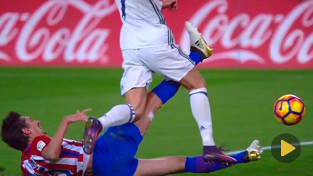 Fernández Borbalán no duda en señalar el penalti a pesar de que se encuentra a mucha distancia de la acción, picando así en la estratagema de Cristiano Ronaldo. Con los tres goles anotados en el Vicente Calderón, el portugués alcanza ya a Luis Suárez y Leo Messi en la tabla de máximos goleadores de la Liga Santander 2016-17, a pesar de su pésimo comienzo goleador en Liga.