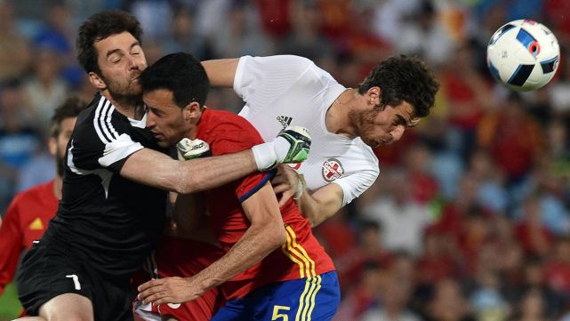 Y es que, minutos antes, el jugador catalán había chocado en un balón aéreo con el guardameta de la selección de Georgia, Makaridze, teniendo que ser ambos atendidos sobre el césped por los servicios médicos en el minuto 53 de partido.
