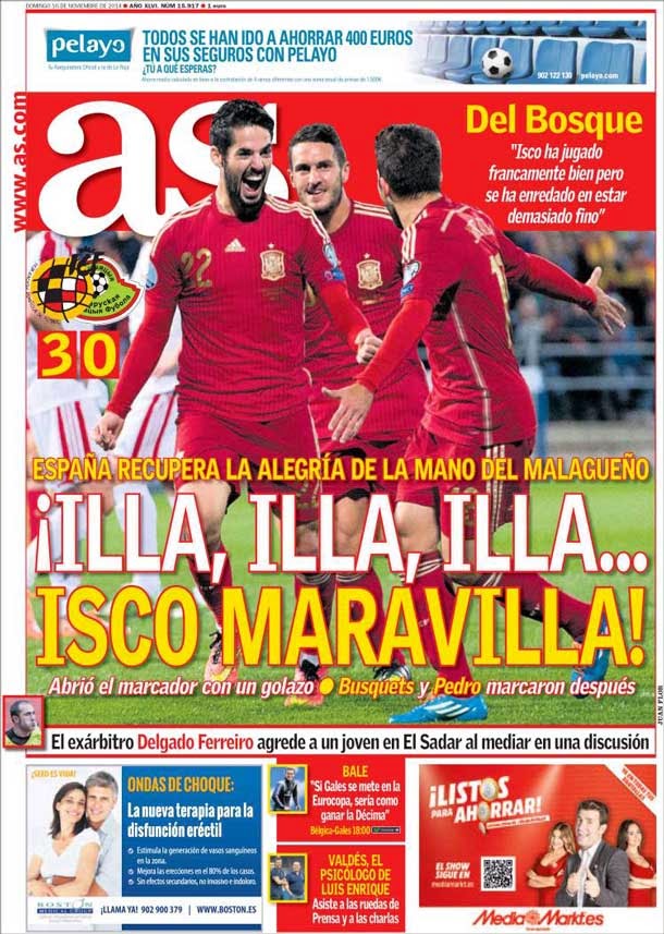 Portada AS (16/11/2014) -¡Illa, illa, illa... Isco maravilla!