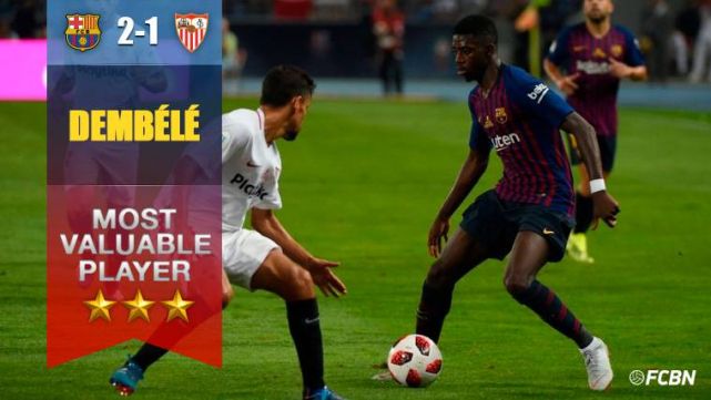 El FC Barcelona ganó este domingo la Supercopa de España tras imponerse al Sevilla (2-1), y entre los protagonistas más destacados del encuentro estuvo Ousmane Dembélé. Futbolistas como Leo Messi, Gerard Piqué o Marc-André Ter Stegen también merecen su mención tras la primera final de la temporada, pero el francés fue determinante con un gol y una actuación para enmarcar.