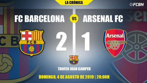 El FC Barcelona estaba de fiesta en el Trofeo Joan Gamper, y tras la presentación oficial de la plantilla, hubo celebración sobre el terreno de juego. Aubameyang adelantó al Arsenal, pero los goles de Maitland-Niles en propia y Suárez amarraron el triunfo