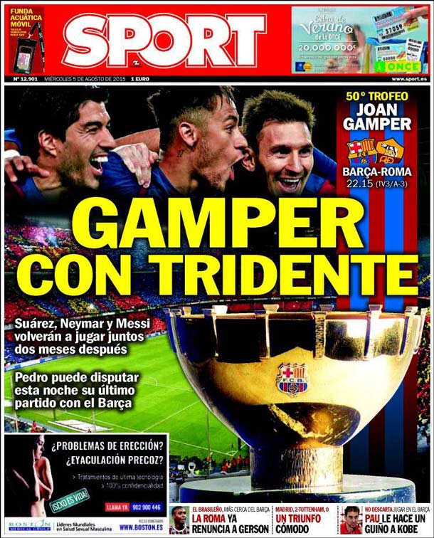 Portada Sport: Gamper con tridente