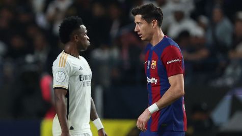 Vinicius fue claramente el mejor futbolista del Clásico de Supercopa de España después de completar un hat-trick en la primera parte. El último de sus goles fue con un penalti en el que Robert Lewandowski y el brasileño mantuvieron una 'extraña' conversación. Ese intercambio de palabras se pudo observar con alguna calidad desde las cámaras de 'Movistar+' y han terminado haciéndose virales rápidamente.